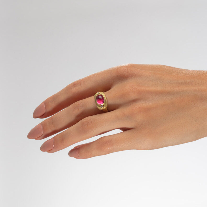 Their engagement rings are timeless and elegant and each have a subtle modern twist. This twist is achieved by a luxurious pop of colour from coloured gemstones and we think it is simply magnificent!