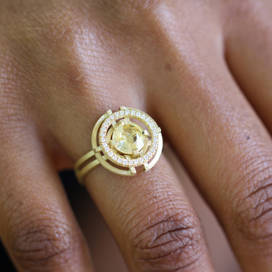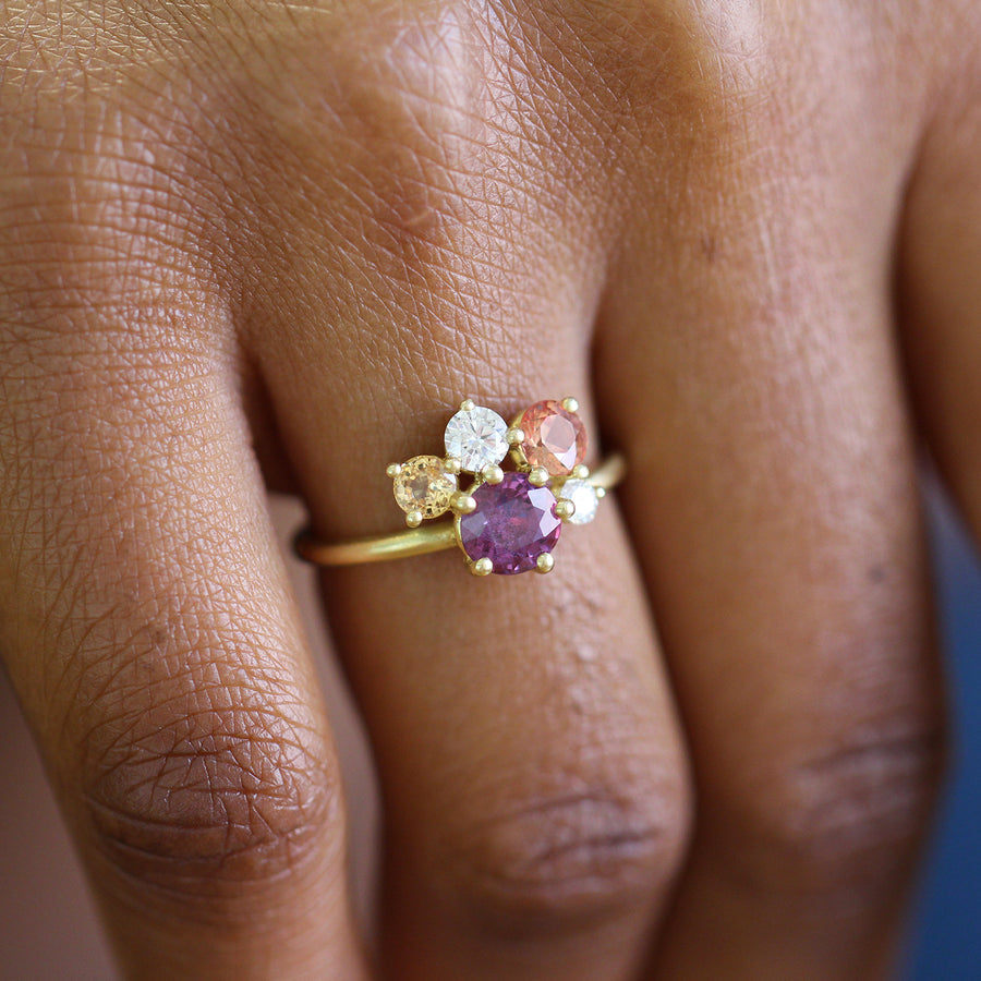 Or if you're looking for something a bit less traditional but still following a classic design try adding multiple coloured gemstones and different metals/textures to spectacular effect.
