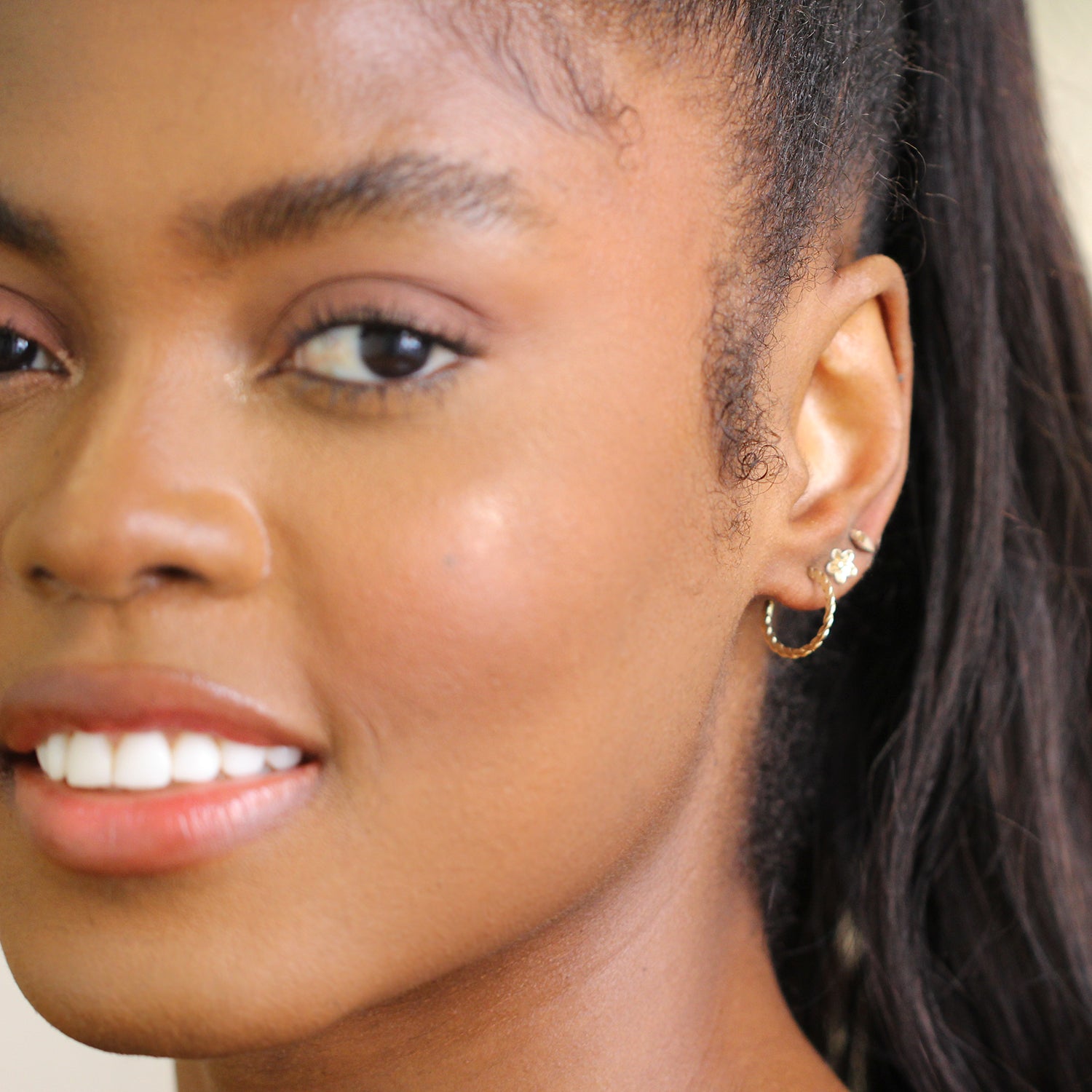 The very wearable 16mm diameter ear hoops are twisted and shaped by hand and hammered flat to work-harden the metals and keep their shape. The end result is a fine twist facing forward and a more pronounced look seen from the side. Wear them on their own as an elegant hoop that will easily go from formal to casual. Or stack them with your favourite earrings for a curated ear.