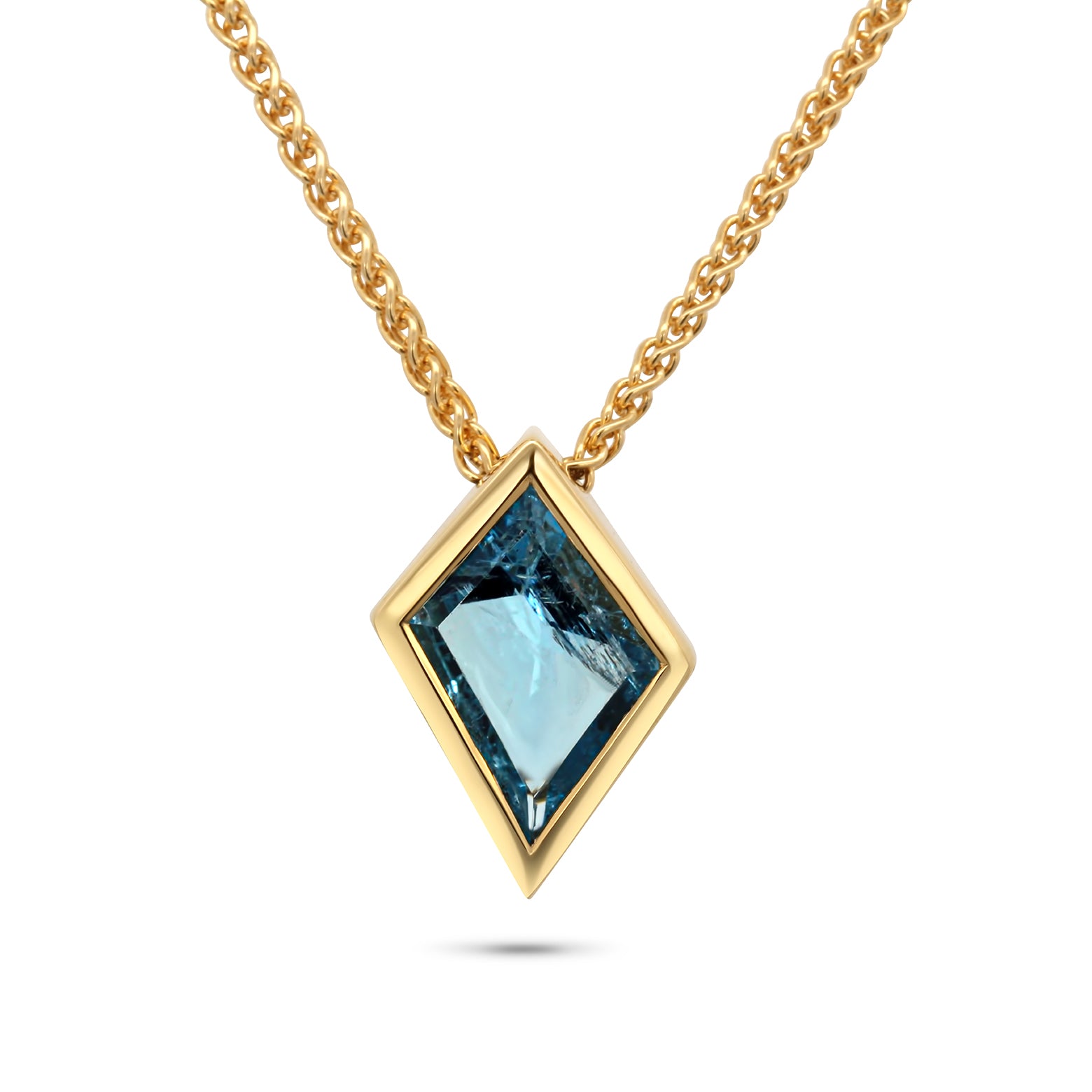 18k Fair Trade Yellow Gold Tenues Bezəl Free Form Aquamarine Pendant