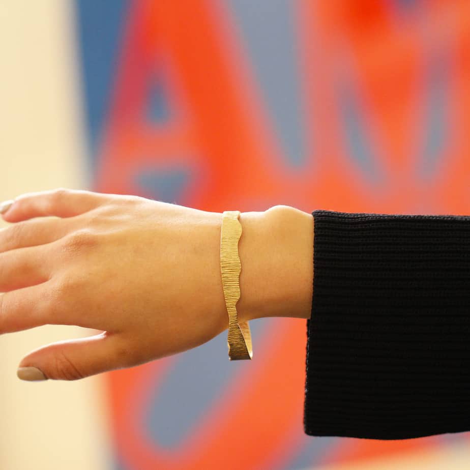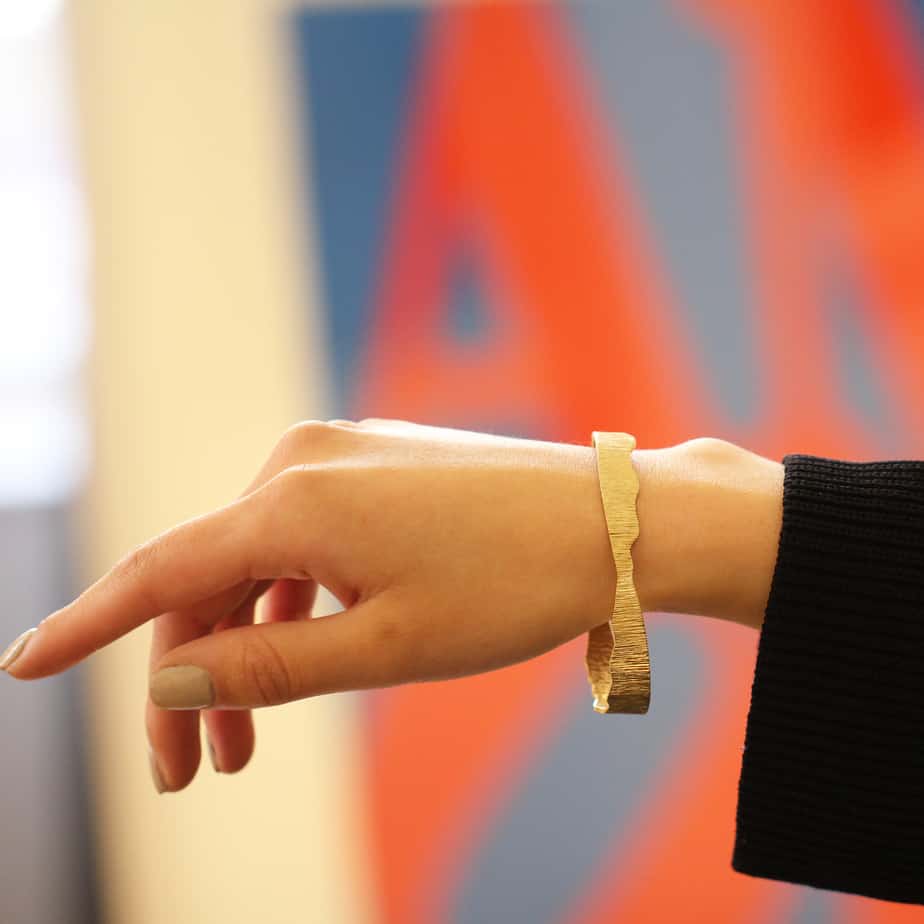 Inspired by the Sligo sea and landscape, this beautifully textured oval bracelet is made in 9k yellow gold. Complimenting all skin tones with works with every outfit. Wear it alone or with another bracelet for a wonderful layered look.