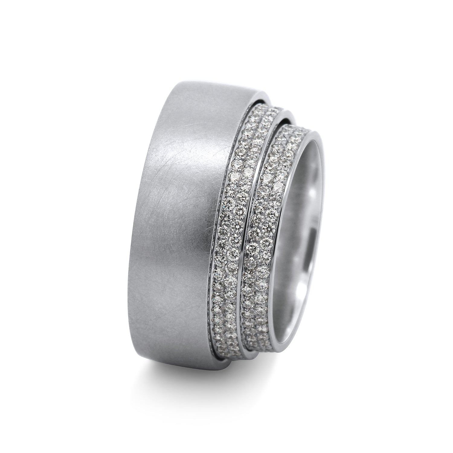 Exquisitely made ring with moving elements. A dramatic statement of contemporary fine art jewellery.