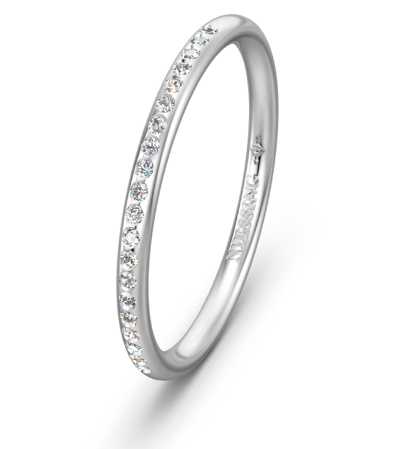 A line of 20 natural sparkling diamonds of the finest quality – the Satellite Fine is the ideal companion for the Niessing Spannring®, wedding rings, or as a delicate statement piece.
