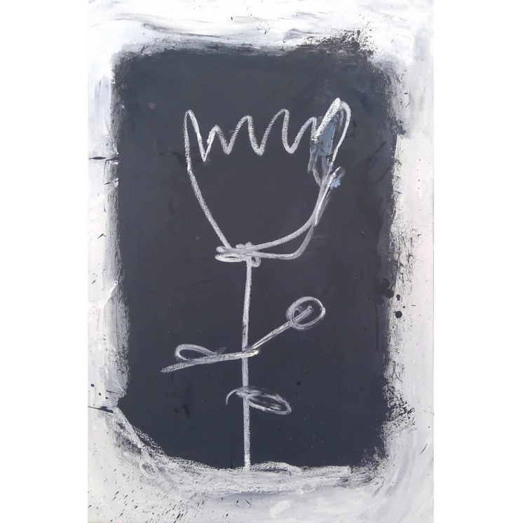 A single white rose quivers against black ground, purity trembling inside grief. The pared-back palette creates stillness, an exhale after turmoil. Rose is both offering and memorial: beauty born from apology.