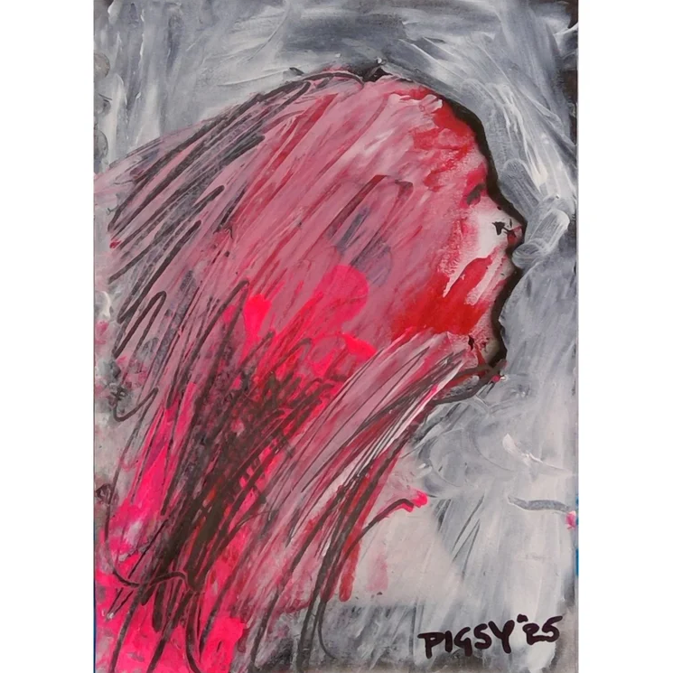 A smaller echo of the larger canvas, its reds and greys compressed into pulse and breath. The scream softens to whisper. Tá Sé Orm #005 distils emotion to gesture, acknowledgment becomes release.